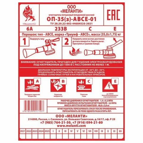 Огнетушитель порошковый Меланти ОП-35 АВСЕ