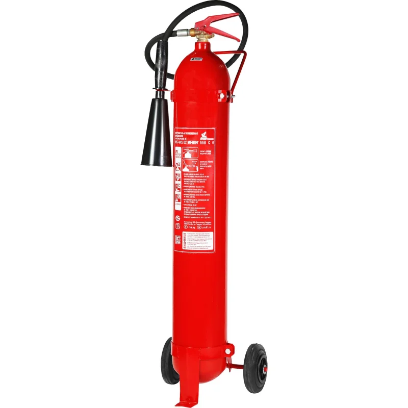 Огнетушитель углекислотный ОУ-7 Иней BCE — самый большой переносной огнетушитель. Имеет повышенную огнетушащую способность по сравнению с предусмотренной ГОСТ Р. Заряжен 7 кг двуокиси углерода высшего сорта. Имеет повышенный ранг по классу В по сравнению с обычным ОУ7 (70В против 55В). Поскольку огнетушащим веществом является сухой газ, то при срабатывании огнетушителя не создается продуктов горения, не задымляется помещение, не наносится ущерб защищаемому имуществу, а также не создается препятствий для эвакуации людей, как при применении порошкового огнетушителя. Наиболее эффективен для защиты имущества, не имеющего риска повреждения от воздействия низкой температуры (перепада температур). Огнетушащая способность: 70В, С, Е (до 10 000 В).Вес огнетушителя: 19.8 кг.Вес огнетушащего вещества: 7 кг.Огнетушащее вещество: двуокись углерода высшего сорта.Температура эксплуатации: от –40 С до +50 С.Баллон высокого давления по Гост 949 на рабочее давление 15 МПа (150 атм).Объем баллона: 10 литров.Паспорт баллона нанесен заводским клеймением по ТР ЕАЭС 032/2013.Срок службы баллона: 20 лет.Срок службы огнетушителя: 10 лет.Перезарядка и переосвидетельствование баллона через 5 лет.Заводская гарантия: 4 года. Проверка работоспособности огнетушителя ежегодно осуществляется взвешиванием на весах и сравнением полученного значения с показателем, выбитым на запорно-пусковом устройстве (разница значений должна быть не менее 5 кг, иначе огнетушитель подлежит перезарядке).Рекомендуется использовать в качестве дополнительного огнетушителя к основному, имеющему ранг 2А — для защиты общественных зданий и помещений категорий Г и Д, или имеющему ранг 4А,-для защиты помещений категорий А, Б, В, при наличии в них электроустановок до 10 000 В.Аксессуары: Подставка напольная «Престиж» арт.366664, 366665, 391384.Транспортный кронштейн КТР-7 «Миг» арт. нет.