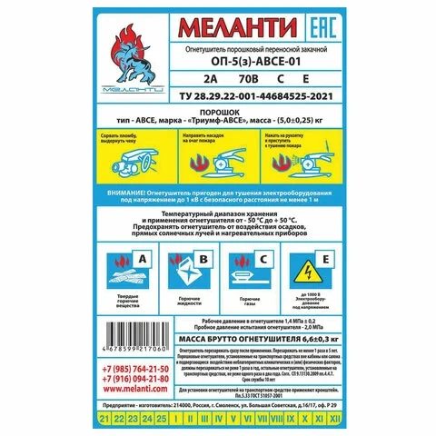 Огнетушитель порошковый Меланти ОП-5 АВСЕ