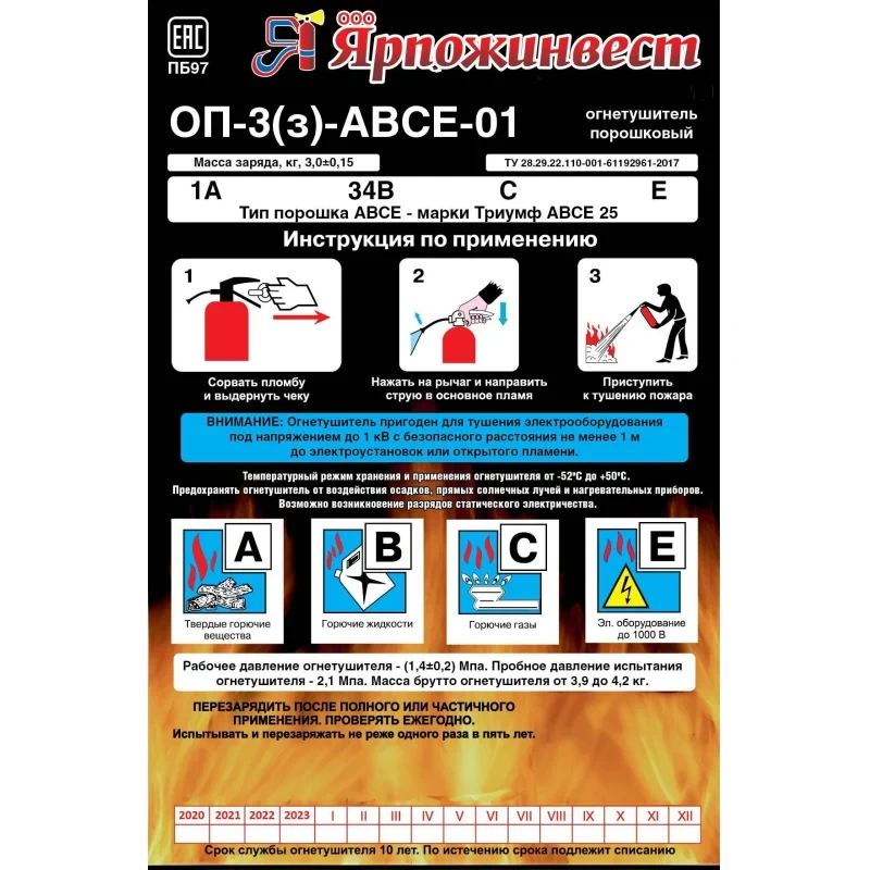 Огнетушитель порошковый Ярпожинвест ОП-3, 4.2кг