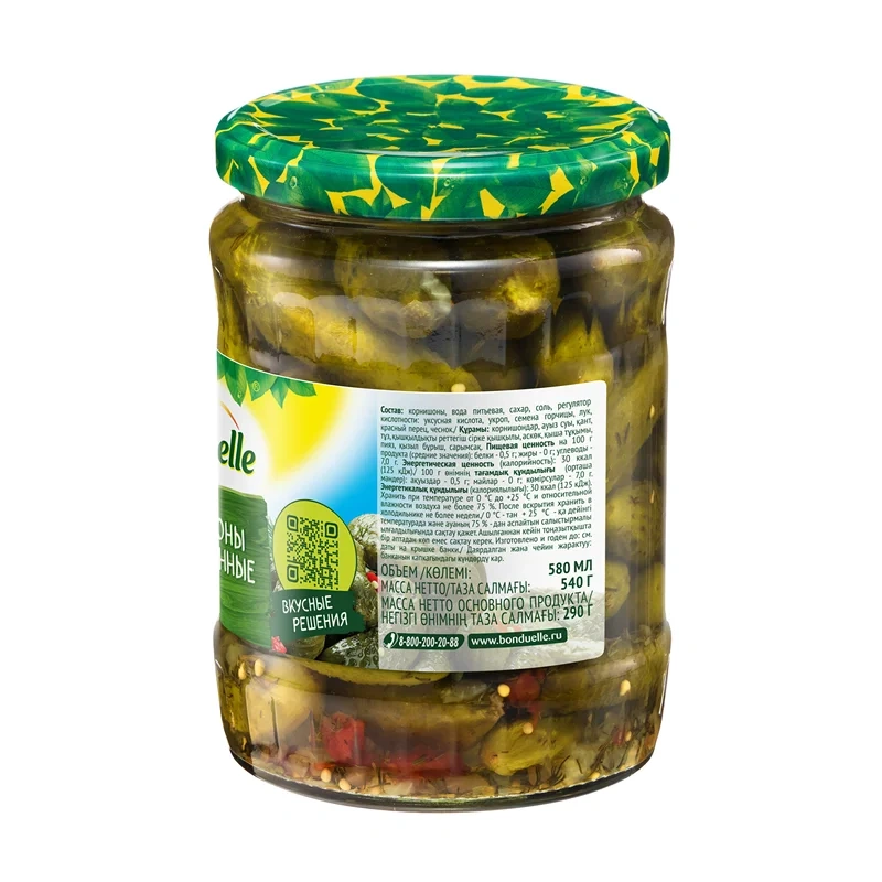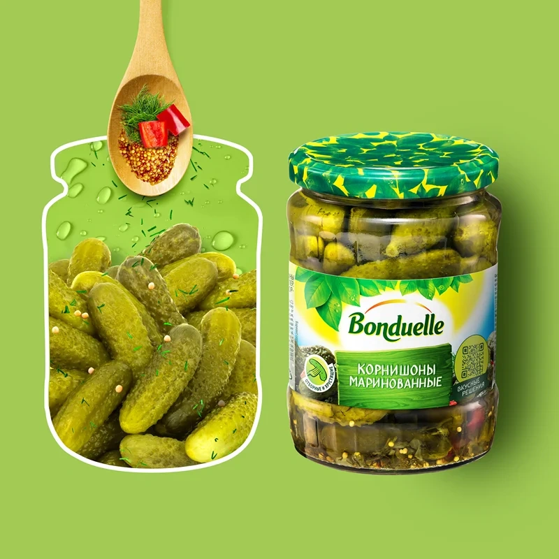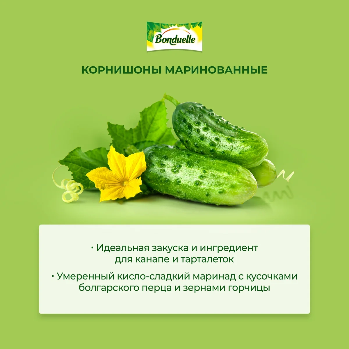 Маринованные корнишоны – это отличное решение, чтобы получить наслаждение от яркого вкуса и не тратить на готовку много времени. Бондюэль уделяет особое внимание качеству – только натуральные, выращенные и произведенные без усилителей вкуса овощи. Корнишоны, пропитанные пикантным маринадом, станут ярким дополнением к праздничному столу. Угостите себя и близких универсальной закуской: минимум усилий и максимум вкусового удовольствия.