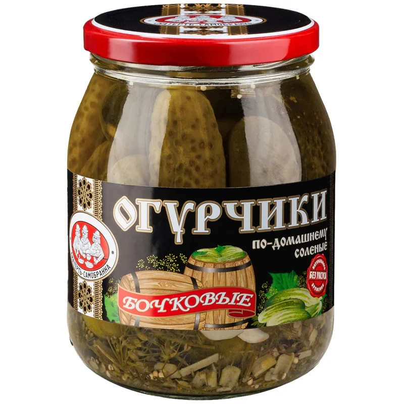Огурцы соленые Скатерть-Самобранка бочковые по-домашнему, 720 мл приготовлены по старинному рецепту бочковой засолки без применения уксуса, поэтому отличаются насыщенным вкусом и ароматом и сохраняют хрусткость и форму. Консервированные овощи хорошо сочетаются с мясными и овощными блюдами, в том числе постными, их можно добавлять в салаты или сэндвичи. Небольшая банка удобна в хранении и без труда поместится на полке в холодильнике. Стеклянная емкость герметична и сохраняет качество продукта на протяжении всего срока хранения.