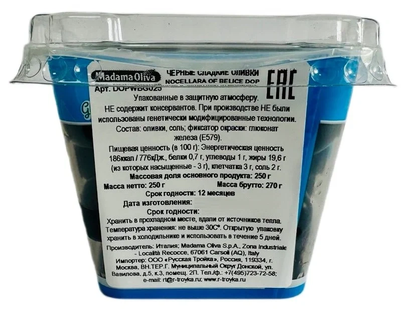 Черные, терпкие, примятые, гигантские оливки с мягкой текстурой. Отлично подойдут на аперитив.