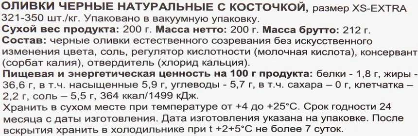 Маслины Marmarabirlik XS-Extra натуральные с косточкой, 200г которые выпускает турецкая компания Marmarabirlik, обладают восхитительными вкусовыми качествами и массой полезных свойств. В отличие от большинства продукции других торговых марок, эти оливки не подвергаются химической обработке, созревают непосредственно на ветках. Их выдерживают в морской соли с целью устранения характерной горечи. Правда, при этом пикантная горчинка все равно остается, ее дает самое полезное в оливках вещество под названием олеуропеин. Кошерный продукт положительно отражается на пищеварении, предотвращает старение тканей, развитие рака, патологий сердечнососудистой системы и повышение артериального давления. Натуральные оливки с косточками поставляются в вакуумной упаковке, обеспечивающим их надежное хранение. Оливки используются для приготовления различных блюд и закусок, а также употребляются в качестве самостоятельного лакомства.