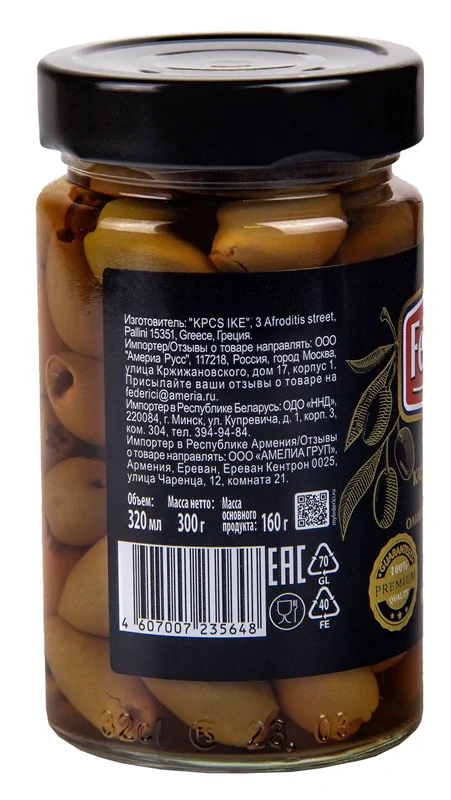 Оливки Federici Каламата блонд без косточки – это идеальный выбор для гурманов как отличное дополнение к различным блюдам в качестве закуски или ингредиента для салатов. Каламата – это известный сорт оливок, который славится своим насыщенным вкусом и ароматом. Их можно использовать в качестве начинки для канапе, добавлять в пасты и рагу, или просто подавать с сыром и другими деликатесами.