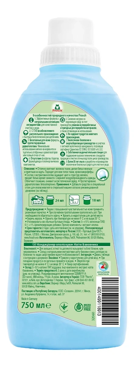 Ополаскиватель для белья Frosch свежесть, 750мл