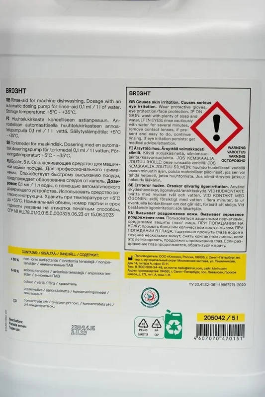 Ополаскиватель для посудомоечной машины Klinin Bright 5л, 205042