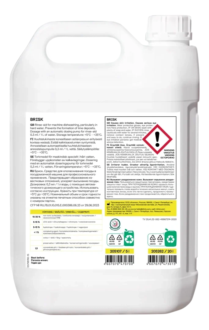Отзывы о «Ополаскиватель для посудомоечной машины Klinin MD3 Bright 5л»