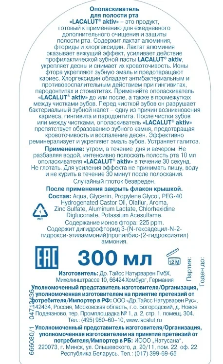 Ополаскиватель Lacalut Aktiv для полости рта, 300мл