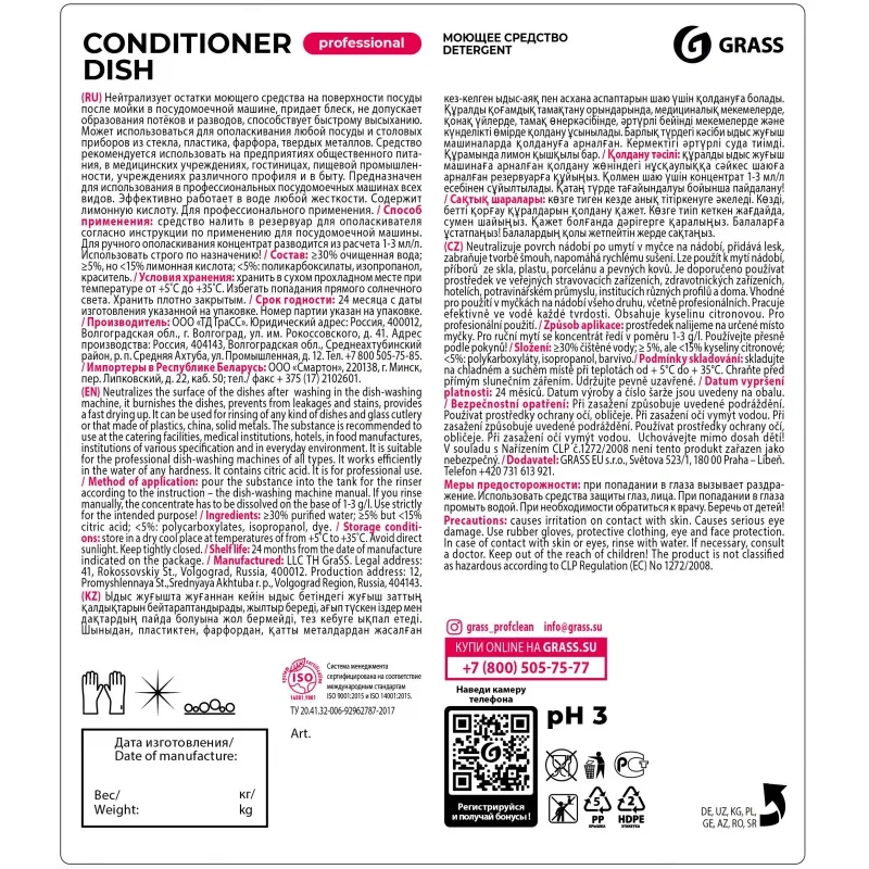 Ополаскиватель для посудомоечной машины Grass Conditioner Dish 5кг, 216101
