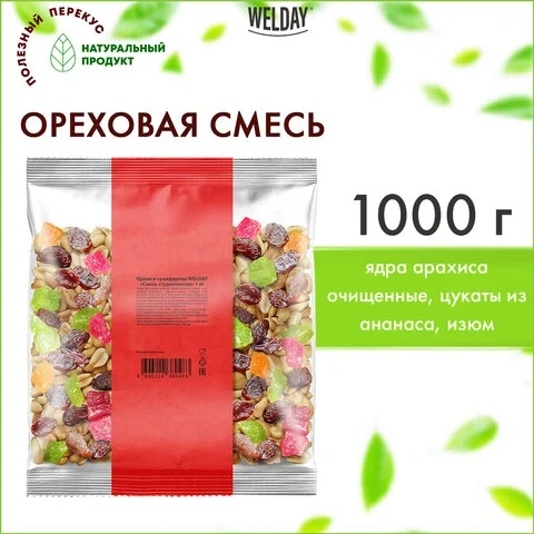 Смесь орехов и сухофруктов Welday студенческая, 1кг