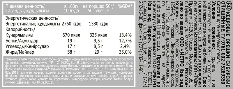 Кедровые орешки Таежный сбор сибирские очищенные, 200г
