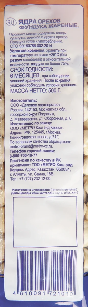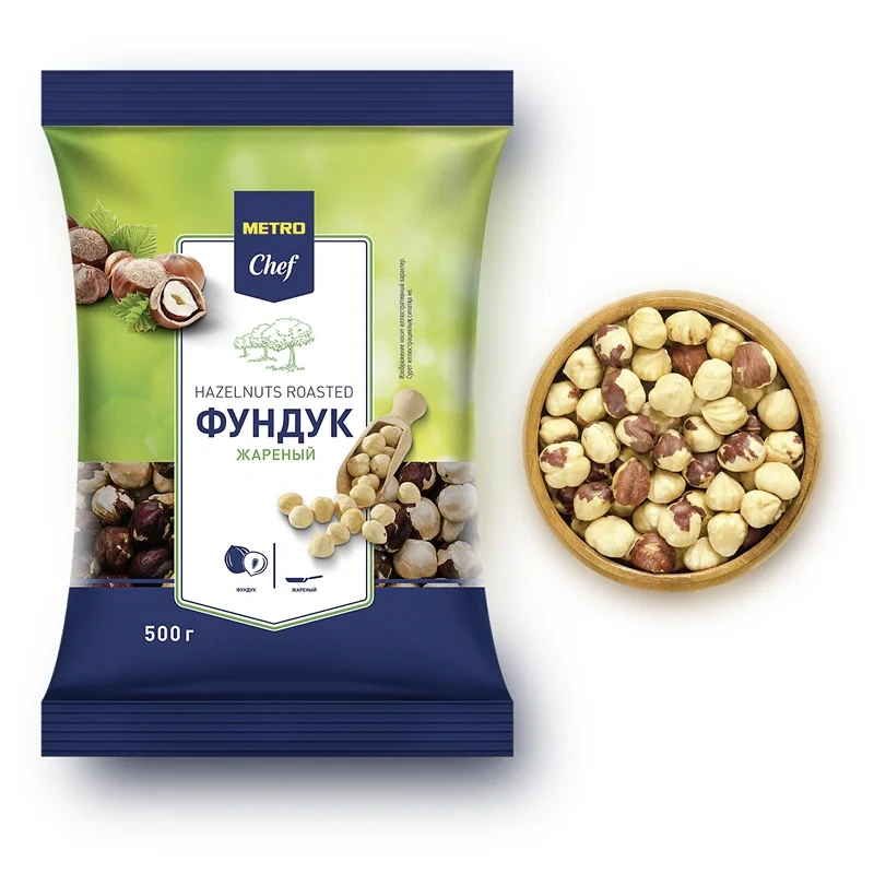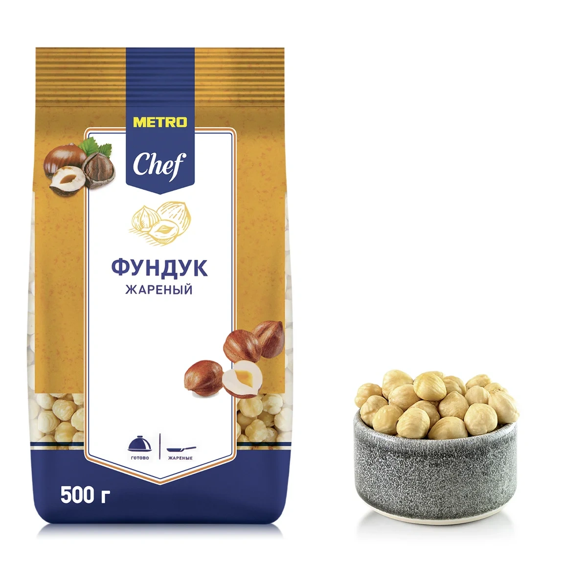 Фундук METRO CHEF жареный расфасован в пакеты порциями по 500 грамм. Такой продукт удобно брать с со...