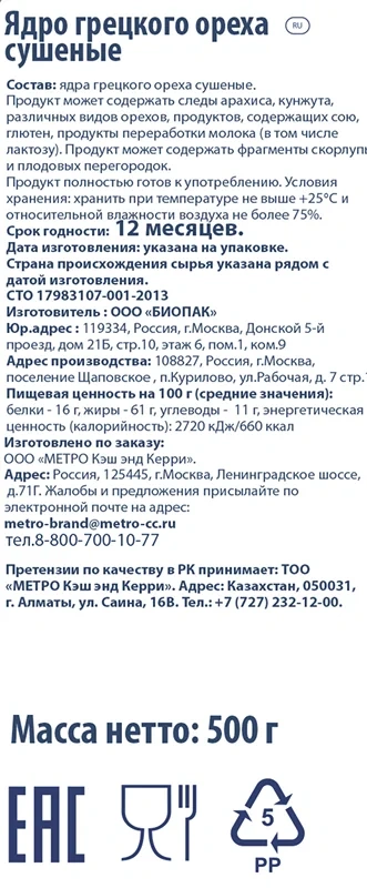 Грецкий орех METRO CHEF Очищенный, 500 г – полезный и очень питательный продукт, который можно употр...