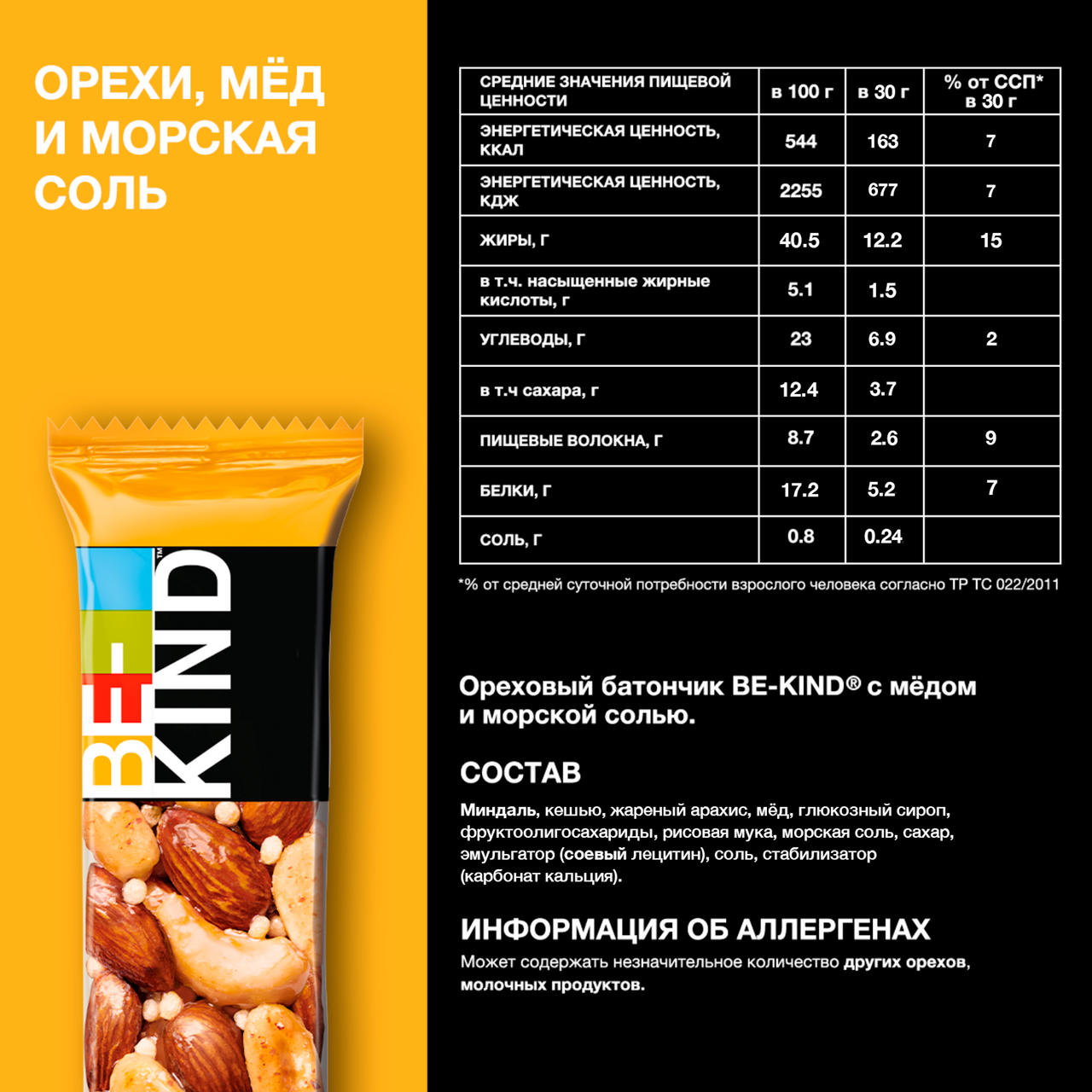 Ореховый батончик BE-KIND орехи/мед/морская соль, 30г