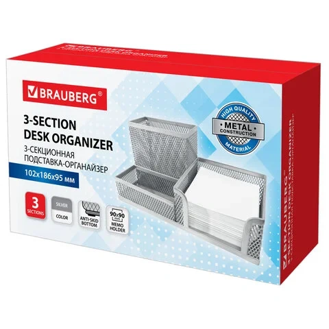 Органайзер настольный Brauberg Germanium 3 секции, 102х186х95мм, серебристый, 231987