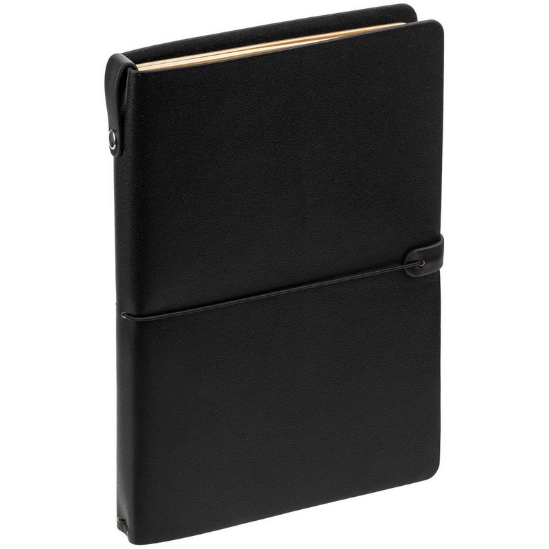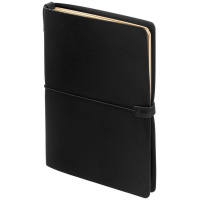 Обложка из рециклированной кожи закрепляется горизонтальной резинкой с «прихватом». Под обложкой 4 сменные тетради:блок на 32 страницы в клетку, в линейку, в точку и с пустыми листами; бумага тонированная плотностью 80 г/м; обложка из крафт-картона. Упакован в индивидуальную подарочную коробку с калькой. Размер: 15х21 см Материал: искусственная кожа Цвет: черный