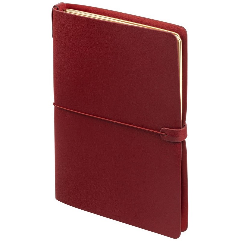 Обложка из рециклированной кожи закрепляется горизонтальной резинкой с «прихватом». Под обложкой 4 сменные тетради:блок на 32 страницы в клетку, в линейку, в точку и с пустыми листами; бумага тонированная плотностью 80 г/м; обложка из крафт-картона. Упакован в индивидуальную подарочную коробку с калькой. Размер: 15х21 см Материал: искусственная кожа Цвет: красный