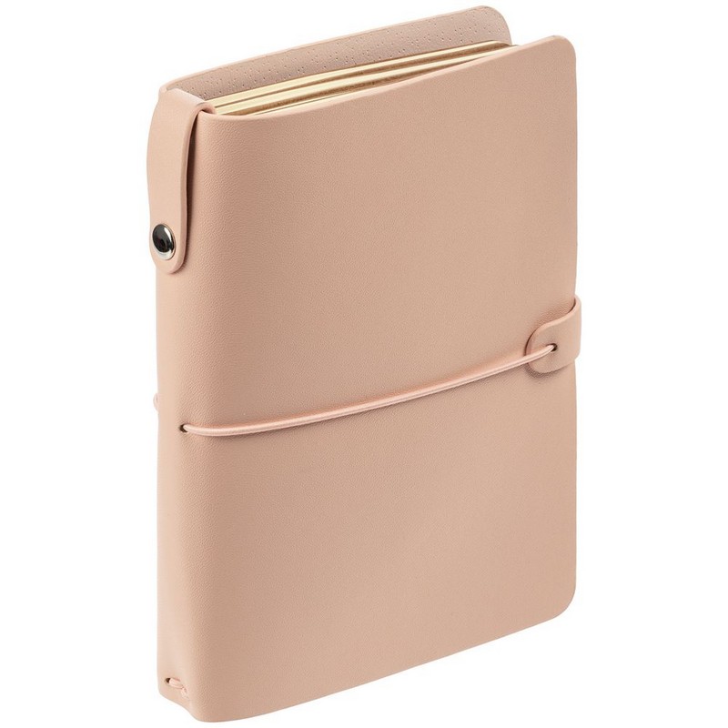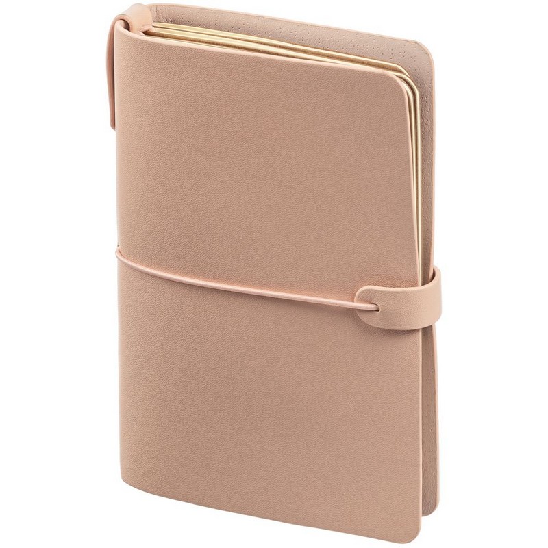Обложка из рециклированной кожи закрепляется горизонтальной резинкой с «прихватом». Под обложкой 4 сменные тетради:блок на 32 страницы в клетку, в линейку, в точку и с пустыми листами; бумага тонированная плотностью 80 г/м; обложка из крафт-картона. Упакован в индивидуальную подарочную коробку с калькой. Размер: 10х14,8 см Материал: искусственная кожа Цвет: розовый