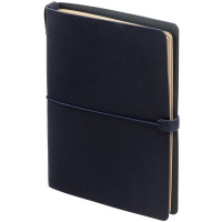 Обложка из рециклированной кожи закрепляется горизонтальной резинкой с «прихватом». Под обложкой 4 сменные тетради:блок на 32 страницы в клетку, в линейку, в точку и с пустыми листами; бумага тонированная плотностью 80 г/м; обложка из крафт-картона. Упакован в индивидуальную подарочную коробку с калькой. Размер: 10х14,8 см Материал: искусственная кожа Цвет: синий