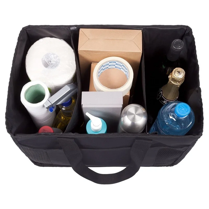 Органайзер с тремя отсеками, наружными карманами с трех сторон и 4 петельками для крепления мелочей. В нем легко разместить все необходимые автомобилисту инструменты и аксессуары. Снабжен удобными ручками для транспортировки. Объем: 40 литров.