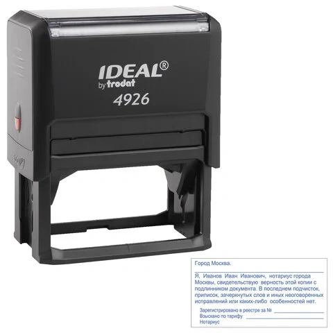 Предназначена для простановки на бумаге оттиска штампа. Клише с изображением оттиска можно переклеить со старого штампа или заказать в специализированной фирме. Укомплектована сменной штемпельной подушкой. Характеристики Длина оттиска: 75 мм Ширина оттиска: 38 мм Автомат: да Материал корпуса: пластик Форма корпуса: прямоугольная Цвет оттиска: синий В комплекте: сменная подушка Цвет корпуса: черный Тип упаковки: картонная коробка Артикул производителя: 125432. Штрих-код: 190084254328. Производитель: Китай.