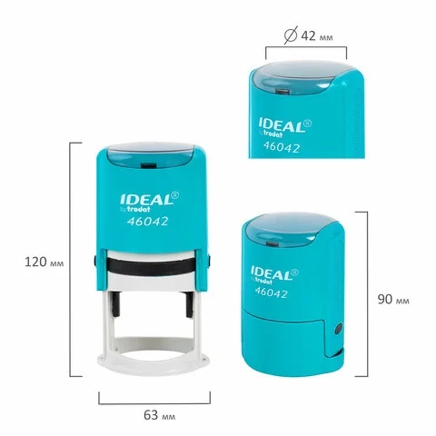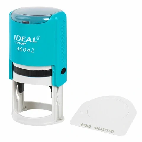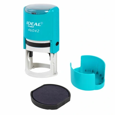Оснастка для печатей оттиск D=42 мм, синий, TRODAT IDEAL 46042, корпус БИРЮЗОВЫЙ, крышка, подушка,19