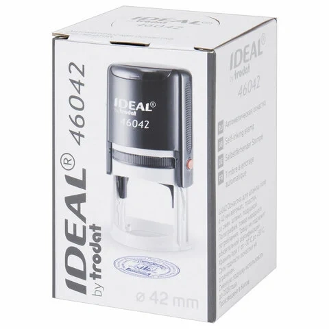 Оснастка TRODAT IDEAL 46042 для круглой печати, с крышкой, автоматическая, материал корпуса пластик. Неизменное Австрийское качество изготовления пластикового корпуса, механизмов и материалов оснастки, обеспечивает возможность бесконечно длительного использование оснастки. Автоматическое окрашивание клише, позволяет сделать четкий хорошо прокрашенный оттиск. Легкая и чистая замена штемпельной подушки TRODAT арт. 6/46042.