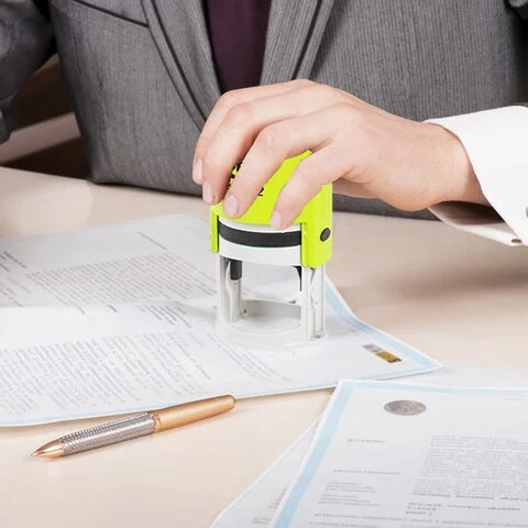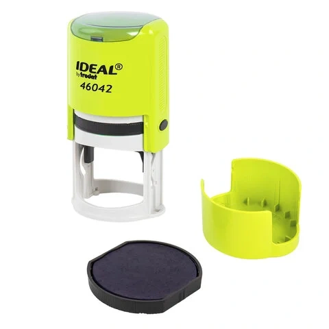 Оснастка для печатей оттиск D=42 мм, синий, TRODAT IDEAL 46042, корпус ЖЕЛТЫЙ, крышка, подушка, 1989
