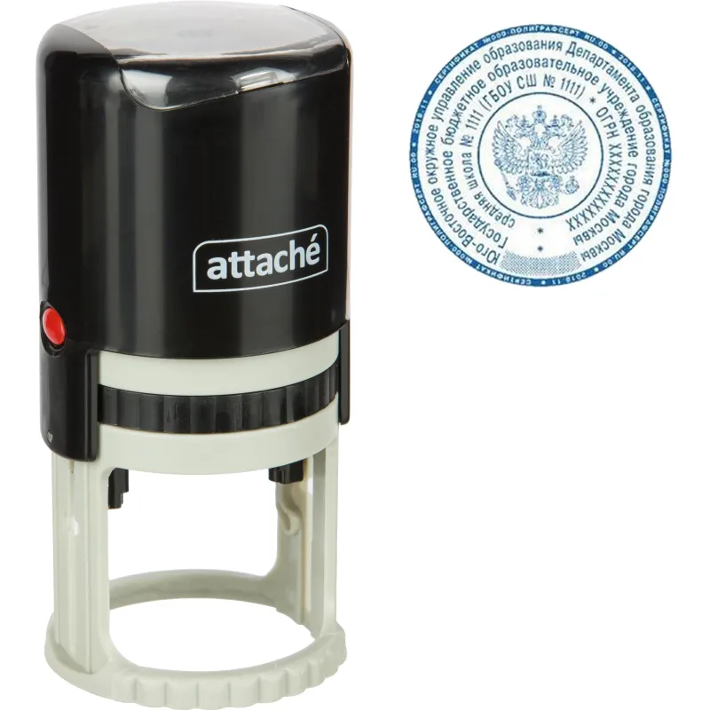 Оснастка для печати круглая Attache. Корпус изготовлен из прочного пластика. Цвет корпуса: черный. Диаметр: 45 мм. Автоматическое окрашивание: да. Легкая и чистая замена штемпельной подушки. Наличие крышки: нет.