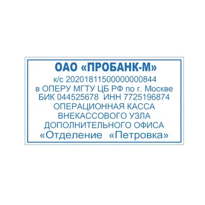 Пример использования: Бухгалтерский или маркировочный штамп с местом для подписи или факсимиле.