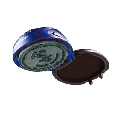 Встроенная подушка синего цвета, не сменная (заправляется краской)