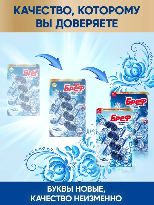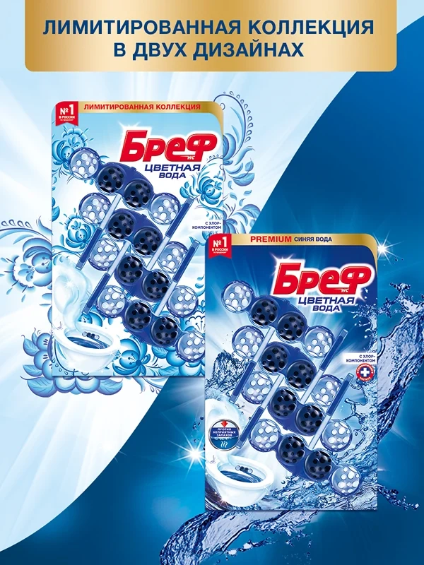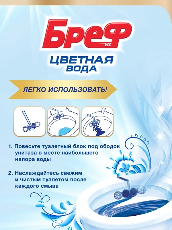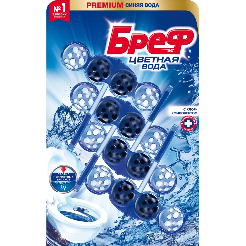 Освежитель для унитаза Bref Цветная Вода с хлор-компонентом, 50г х 4шт, подвесной блок