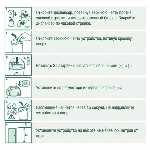 Способ применения: прочитать внимательно этикетку перед использованием и сохранить её на весь период использования продукта. Вставить баллон в выключенный автоматический распылитель. Всегда направлять струю аэрозоля от лица. Включить — распыление начнётся через 15 секунд.