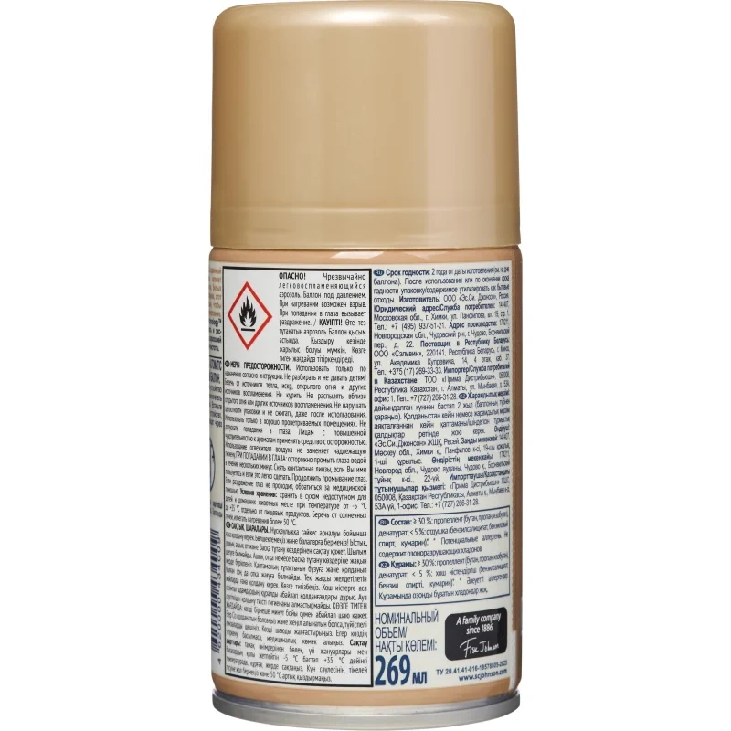 Назначение: изуми всех вокруг. Созданный с заботой о природе, с нотами цветков ванили, белой орхидеи и сандалового дерева, этот сливочный аромат создан, чтобы произвести шикарное впечатление. Универсальный Баллон сменный, подходит к любым автоматическим освежителям воздуха. «True Scent Technology» гарантирует безопасность и экспертную формулу своих аэрозолей для создания ощущения чистоты. Парфюмерные композиции с эфирными маслами. Аромат 24/7, до 2400 распылений.