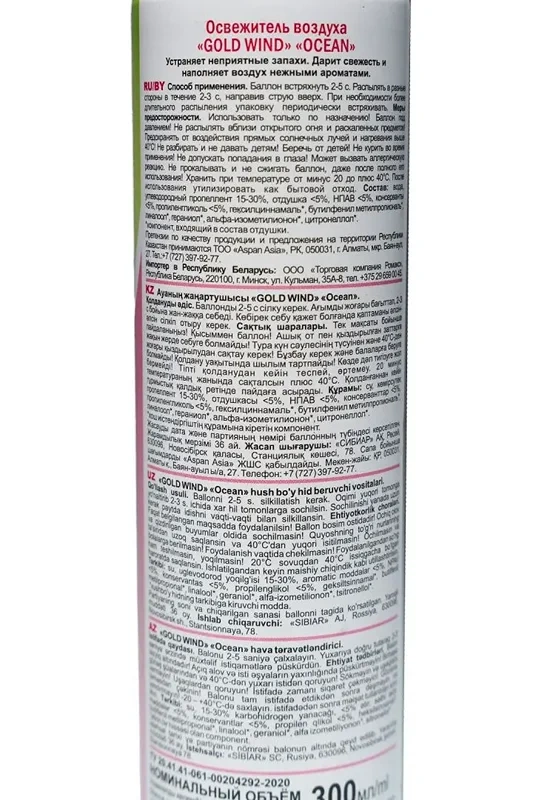 Освежитель воздуха Gold Wind 2 in 1 океан, 300мл, аэрозоль