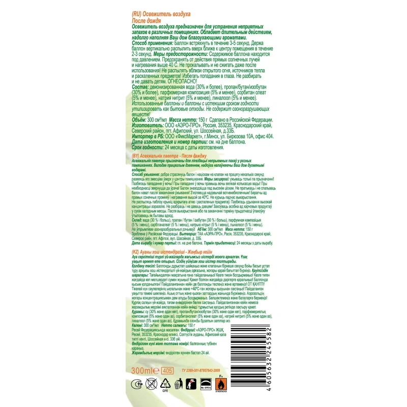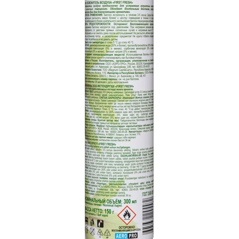Энергично встряхнуть бутылку! Распылить в воздухе помещения.
