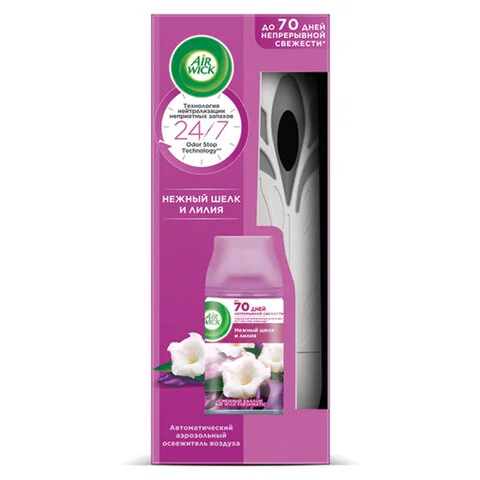 Автоматический освежитель воздуха AIRWICK Freshmatic – это небольшое стильное устройство, которое автоматически борется с неприятными запахами день за днём. Аромат 'Нежный шелк и лилия' наполнит помещение изысканными нотками цветущей лилии и нежного шелка.