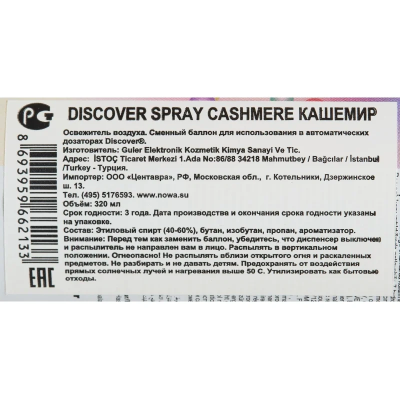 Баллон сменный для автоматического освежителя Discover Cashmere Кашемир 320 мл