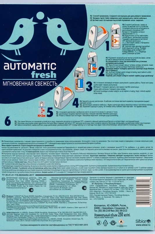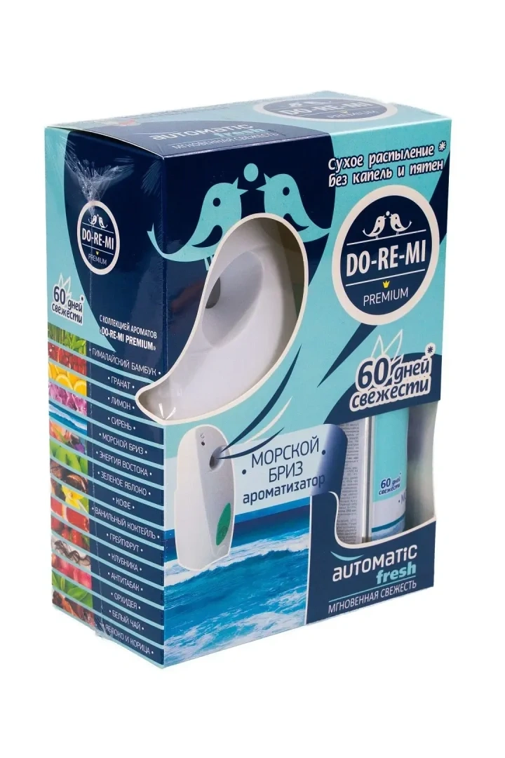 Автоматический освежитель воздуха со сменным баллонном DO-RE-MI (До-ре-ми) Premium 'Дыхание моря'Сухое распыление250 мл.