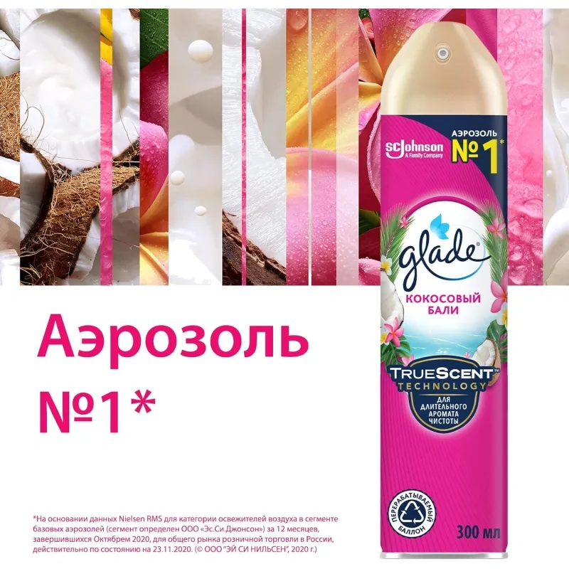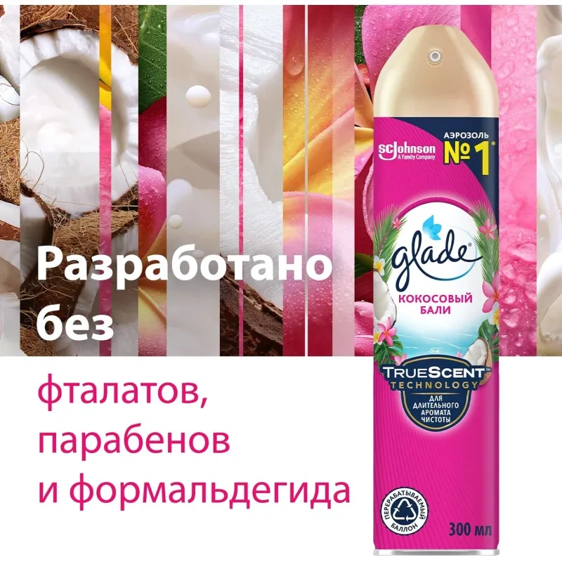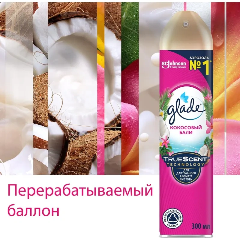 Освежитель воздуха Glade Аэрозоль Кокосовый Бали, 300 мл