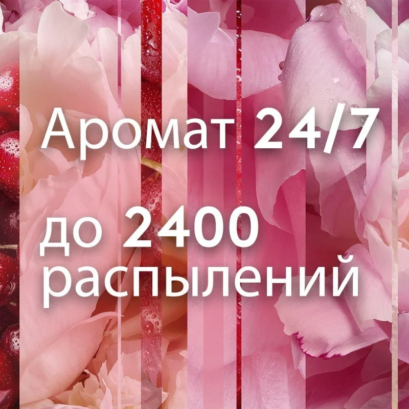 Автоматический освежитель воздуха Glade Automatic Пион и сочные ягоды. Этот аромат дарует Вам романтическое настроение. Позвольте себе легкий флирт. Созданный с заботой о природе с нотами манящего пиона, спелой вишни и светлых пород дерева, этот аромат волнует и пробуждает фантазию. Автоматический освежитель воздуха в пластиковом корпусе белого цвета. Предназначен для устранения неприятного запаха в домах, офисах, ресторанах и кафе, туалетах, ванных комнатах, холлах, помещениях для курения, магазинах и спортивных залах. 2 способа распыления: Установите таймер. Выберите 1 из 3 настроек (9, 18 или 36 мин), чтобы установить интервал автоматического распыления. Нажмите на кнопку. На верхней части прибора кнопка распыления для дополнительной свежести в любое время. Преимущества продукта: - True Scent (TM) Technology гарантирует безопасность и экспертную формулу своих аэрозолей для создания ощущения чистоты. - Свежесть 24 часа, 7 дней в неделю, до 2400 распылений - Универсальный, подходит для любых сменных баллонов - Восхитительные парфюмерные композиции с эфирными маслами - Возможность изменения интервала распыления - Кнопка мгновенного распыления - Борется с неприятными запахами - Элегантный дизайн в виде вазы, которую можно не только поставить, но и подвесить - Самостоятельное распыление - Автоматическое устройство 1 штука; - Универсальный сменный аэрозольный баллон 1 штука; Внимание! Элемент питания (или кабель USB, в зависимости от товара и от АГ) не идет в комплекте. батарейки АА 2 штуки. Гарантия 24 месяца