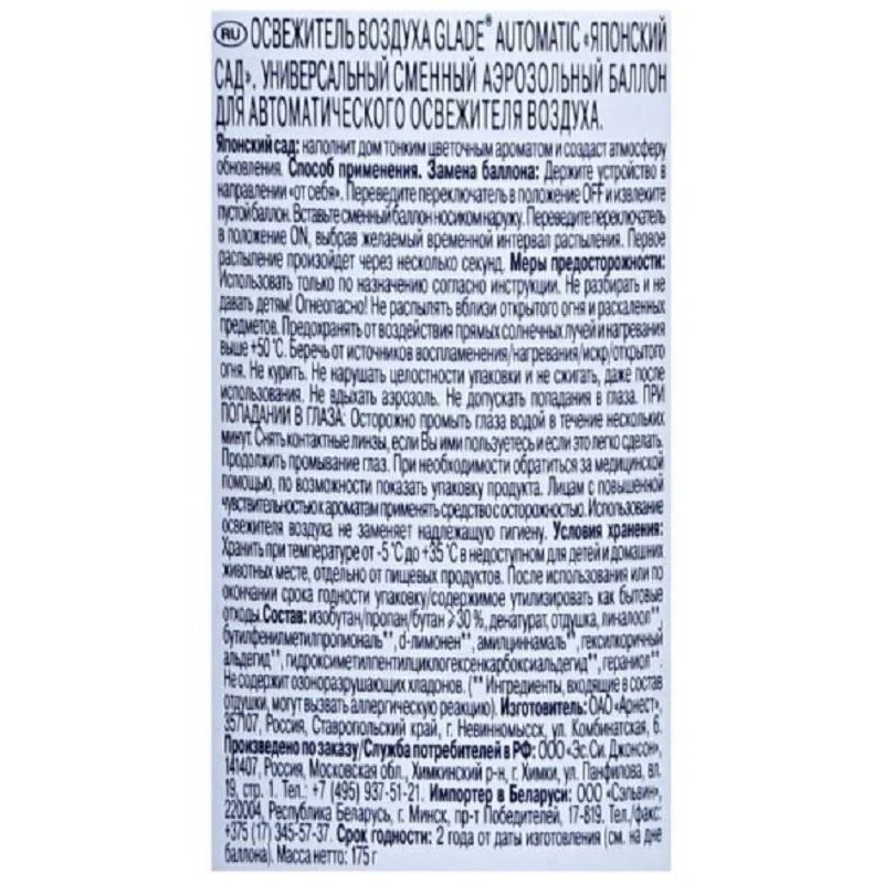 Баллон сменный для автоматического освежителя Glade Японский сад 269 мл
