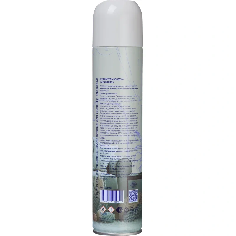Освежитель воздуха Luscan Антизапах 330 мл (сухое распыление). Назначение/особенности: освежитель для воздуха Luscan нейтрализует запахи домашних животных, табачного дыма, любые другие посторонние запахи и дарит нежный свежий аромат. Подходит для дома и любых общественных мест. Формула сухого распыления экономична в использовании и не оставляет следов на поверхности. Способ применения: баллон встряхнуть. Распылять в разные стороны в течение 2-3 секунд, направив струю вверх. Применять при температуре не ниже плюс 10C. Меры предосторожности: использовать только по назначению! Баллон под давлением! Не распылять вблизи открытого огня и раскаленных предметов! Предохранять от воздействия прямых солнечных лучей и нагревания выше 40C! Не разбирать и не давать детям! Не курить во время применения! При попадании в глаза вызывает выраженное раздражение! Не допускать попадания в глаза и на раздраженную кожу, при попадании - промыть водой. Не нарушать целостности упаковки и не сжигать, даже после использования! Состав: углеводородный пропеллент >30%, спирт этиловый денатурированный >30%, пропиленгликоль 5-15%, отдушка <5%. Условия хранения: хранить при температуре от минус 20С до плюс 40С. После использования утилизировать как бытовой отход. Срок годности: 36 месяцев с даты изготовления (дату изготовления см. на упаковке).