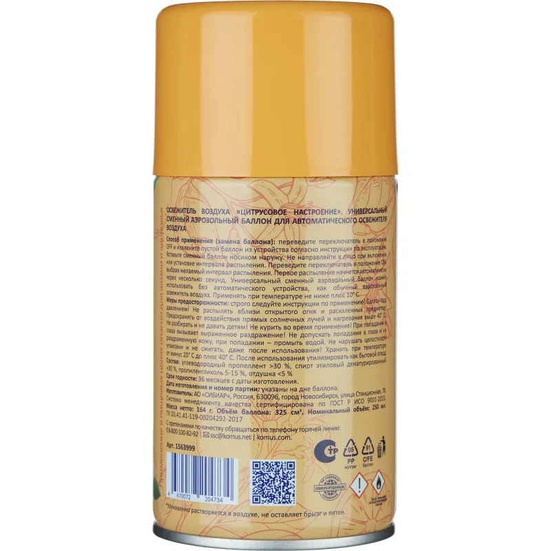 Баллон сменный для автоматического освежителя Luscan Цитрусовое настроение 250 мл