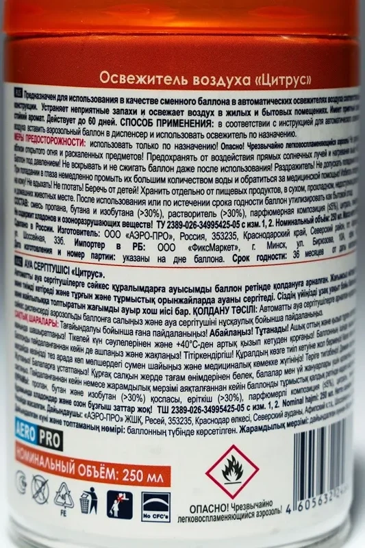Аэрозоли Sky - это серия освежителей воздуха, созданных на основе натуральных компонентов, которые легко устраняют неприятные запахи, оставляя свой тонкий и нежный аромат (подходит для Glade, Airwick). Состав: деионизованная вода (30% и более), пропан/бутан/ изобутан (30% и более), парфюмерная композиция (5% и менее), сорбитан олеат (5% и менее), натрия нитрит (5% и менее)