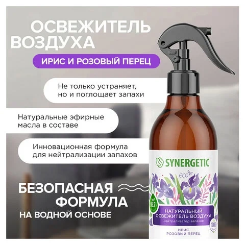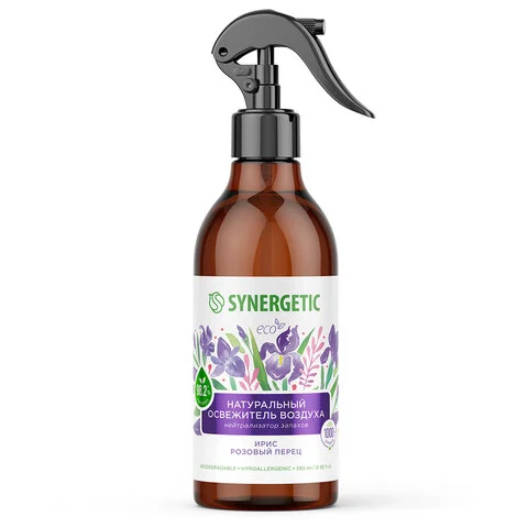 Освежитель воздуха Synergetic Ирис и розовый перец, биоразлагаемый, нейтрализатор запахов, 380мл