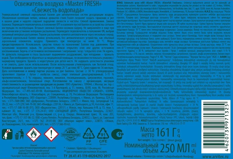Освежитель воздуха Master Fresh Свежесть водопада сменный баллон, 250мл