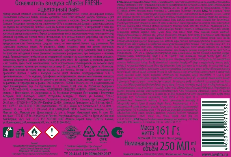 Освежитель воздуха Master Fresh Цветочный рай сменный баллон, 250мл