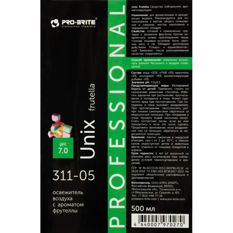 Освежитель воздуха Pro-Brite Unix Frutella 500мл, 311-05, с ароматом фрутеллы
